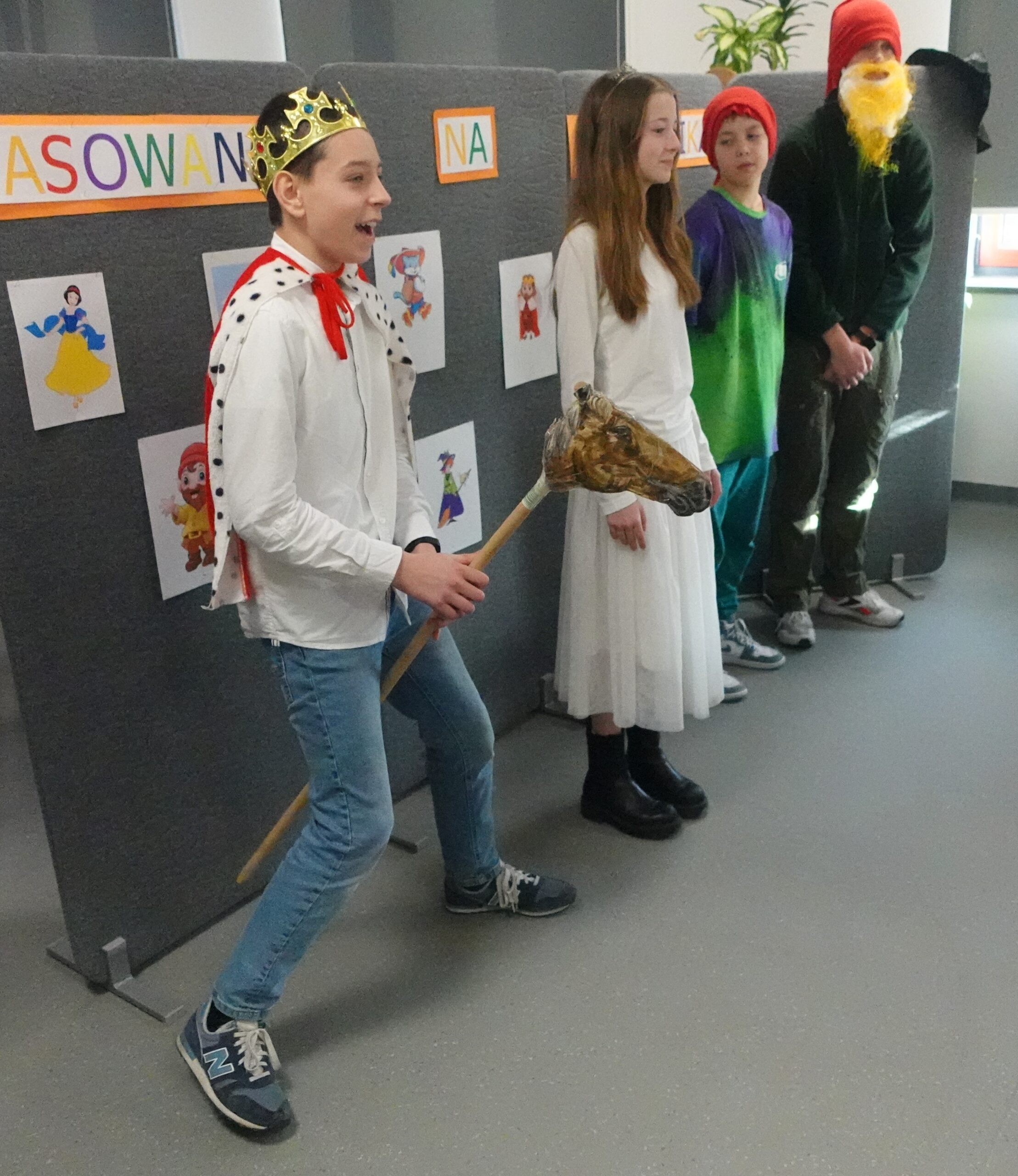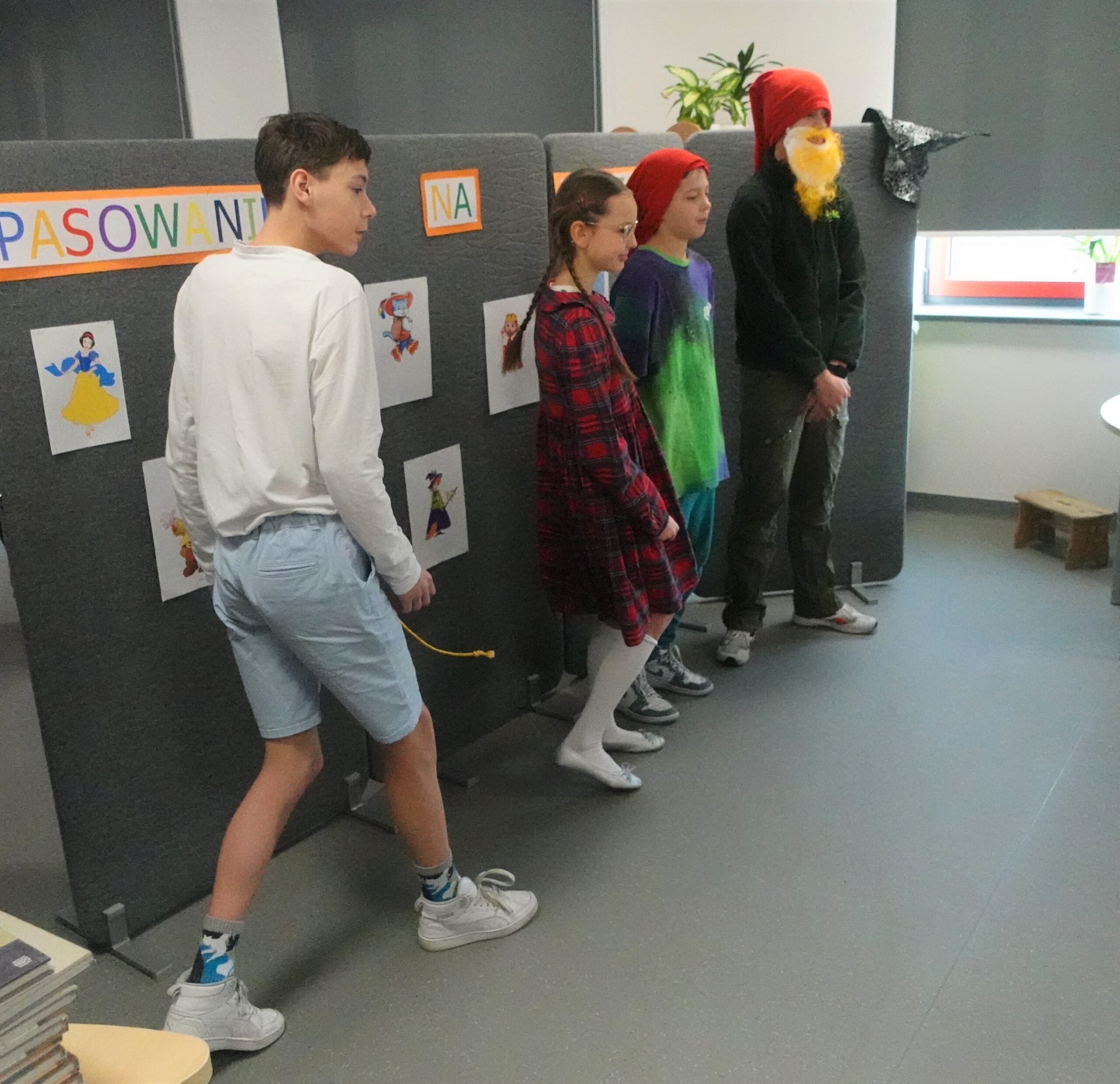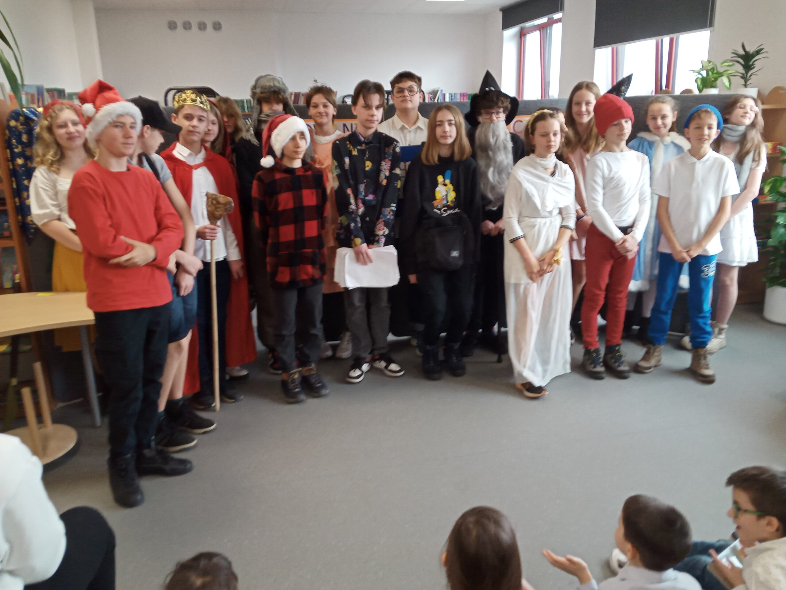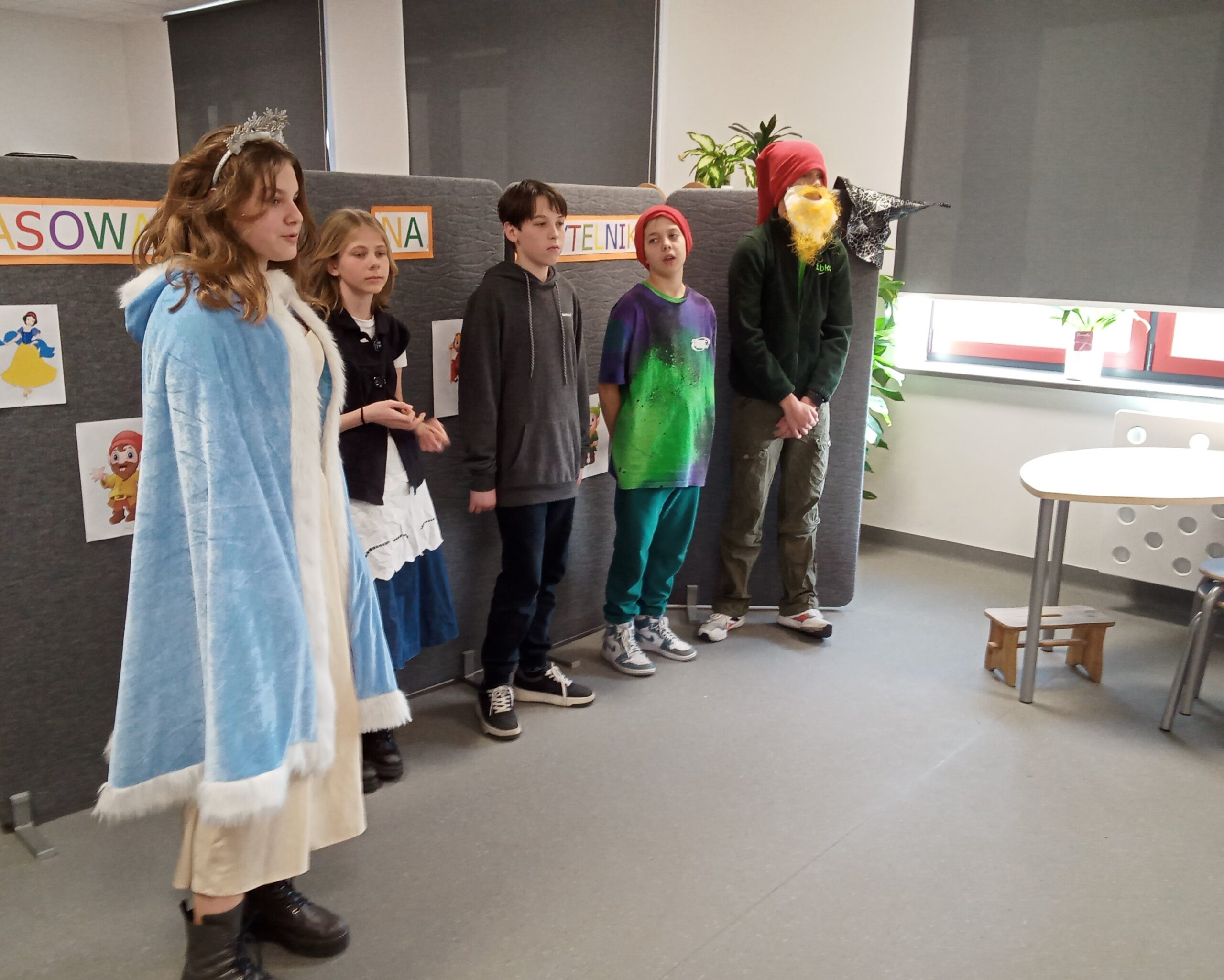 W dniach 23 i 27 lutego 2023 roku w bibliotece szkolnej odbyło się pasowanie pierwszoklasistów na czytelników. Uroczystość uświetnił występ uczniów klas VII b i VII c. Widzowie mieli za zadanie odgadnąć, w którą z bajkowych postaci wcielili się ich starsi koledzy.