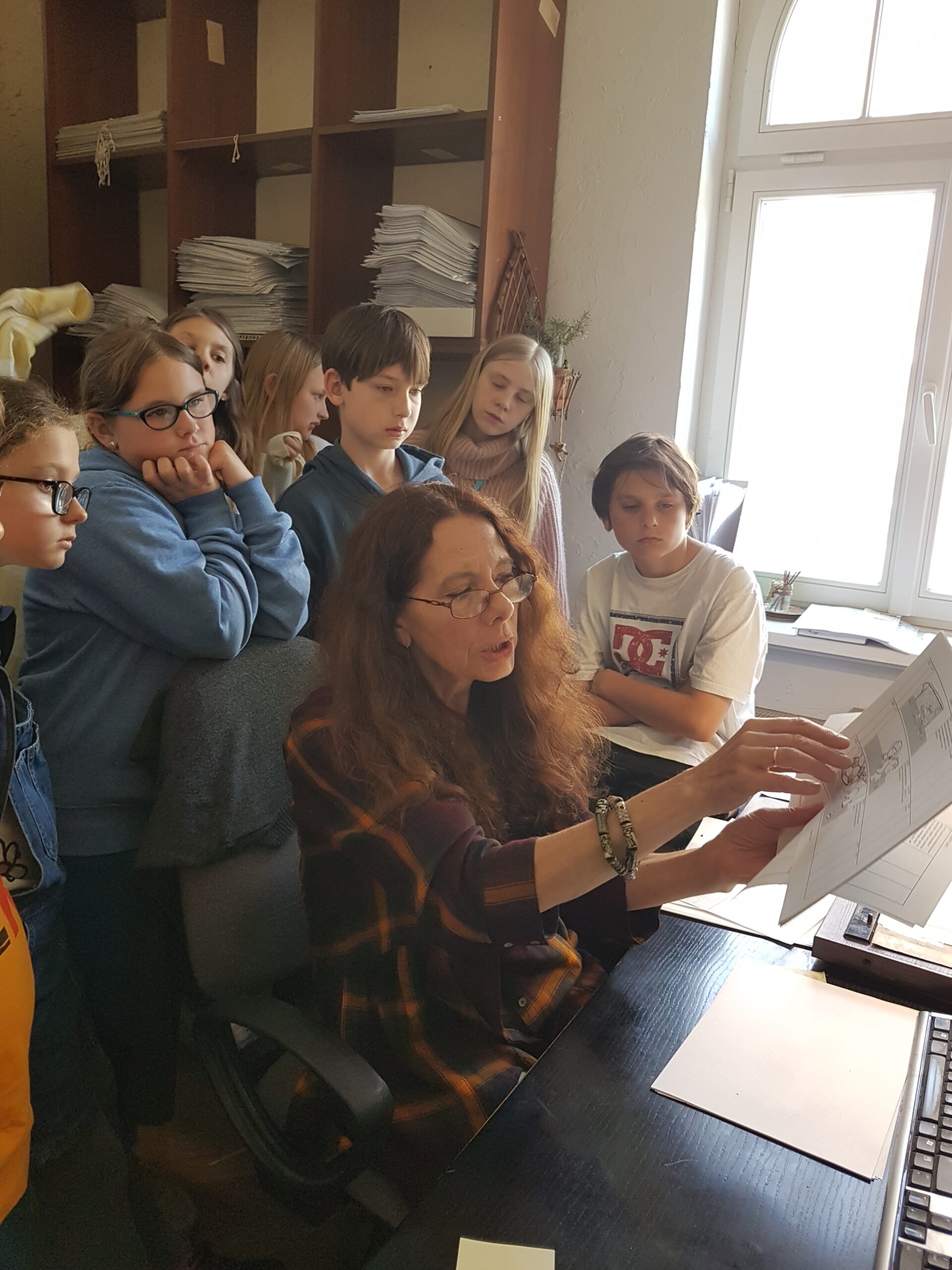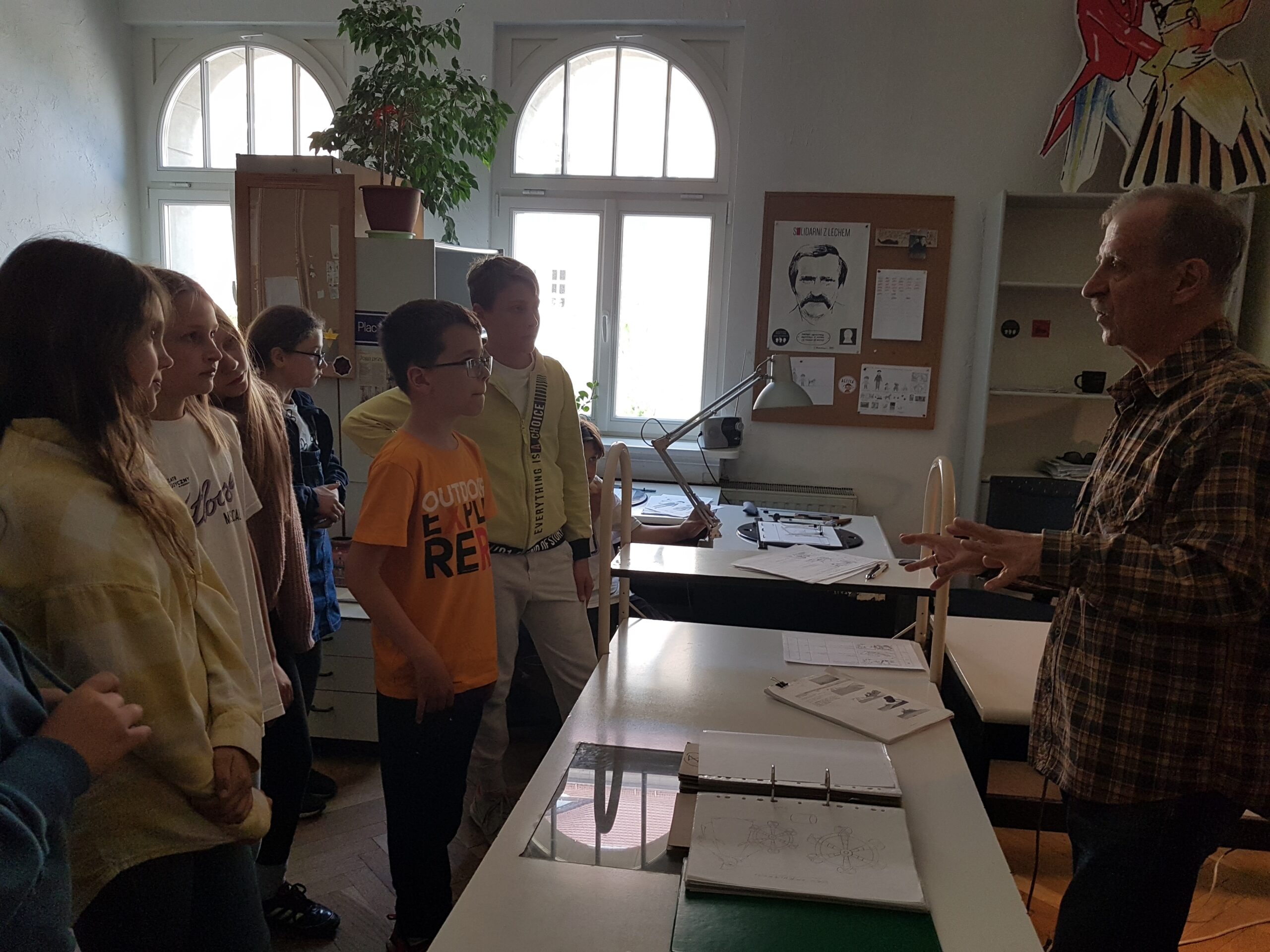 W trakcie wizyty w TV Studiu Filmów Animowanych zobaczyli projekty postaci, rysunki, lalki, scenografie tworzone różnymi metodami, przyglądali się pracy i objaśnieniom animatorów, a nawet była okazja do stworzenia ruchu skrzydeł łabędzia za pomocą piasku na czarnym bristolu.