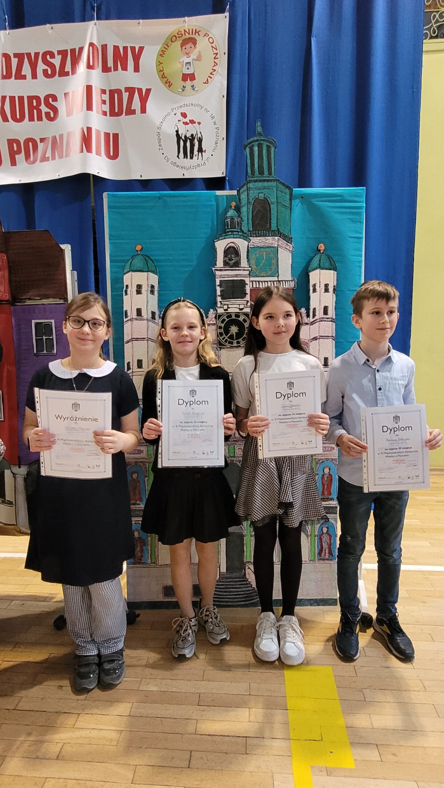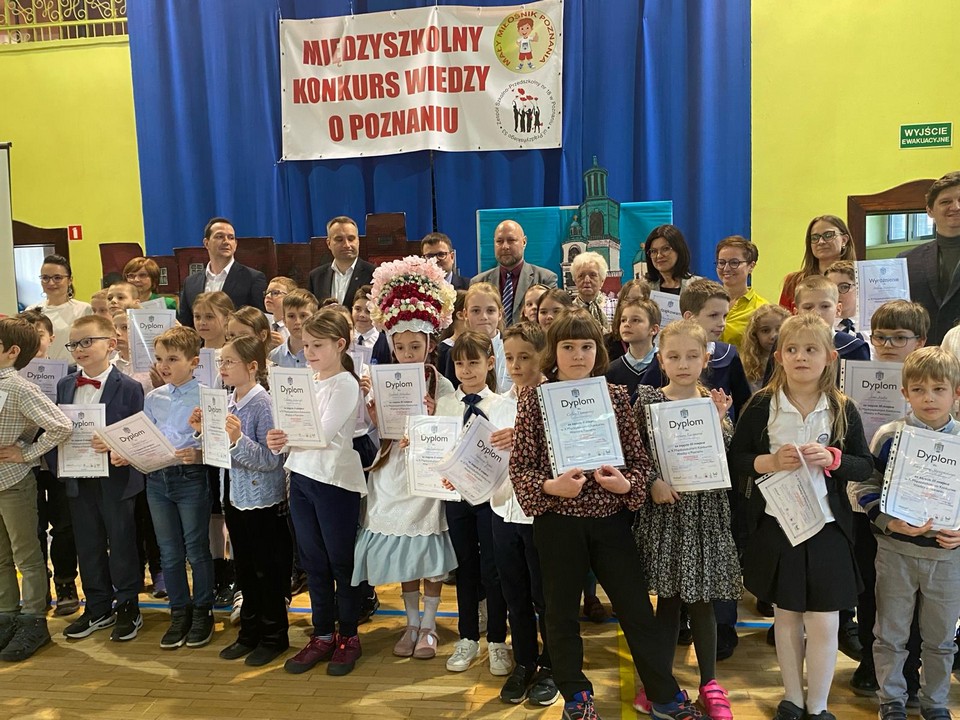 W X Międzyszkolnym Konkursie Wiedzy o Poznaniu każdą szkołę mogło reprezentować czworo uczniów wyłonionych w eliminacjach szkolnych. Po etapie intensywnych przygotowań i w świetlicy, i w domu w dniu 12 marca udaliśmy się do ZSP nr 18 w Poznaniu. W konkursie wzięło udział  63 uczniów z 17 szkół. Długi tydzień oczekiwań na wyniki przyniósł bardzo ważną informację. Nasi uczniowie zajęli w indywidualnych zmaganiach
