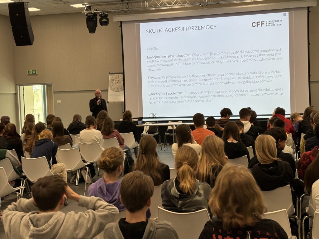 W ramach zapobiegania przemocy, uczniowie, rodzice i pracownicy szkoły, uczestniczyli w specjalnym wykładzie, który poprowadził pan Damian Kupczyk. Przeprowadzono dwa odrębne spotkania, jedno dla uczniów klas 7 i 8, a drugie dla rodziców i pracowników Szkoły Podstawowej nr 62 w Zespole Szkolno-Przedszkolnym nr 15 w Poznaniu. Szczegółowo omówione zostały formy i skutki przemocy.