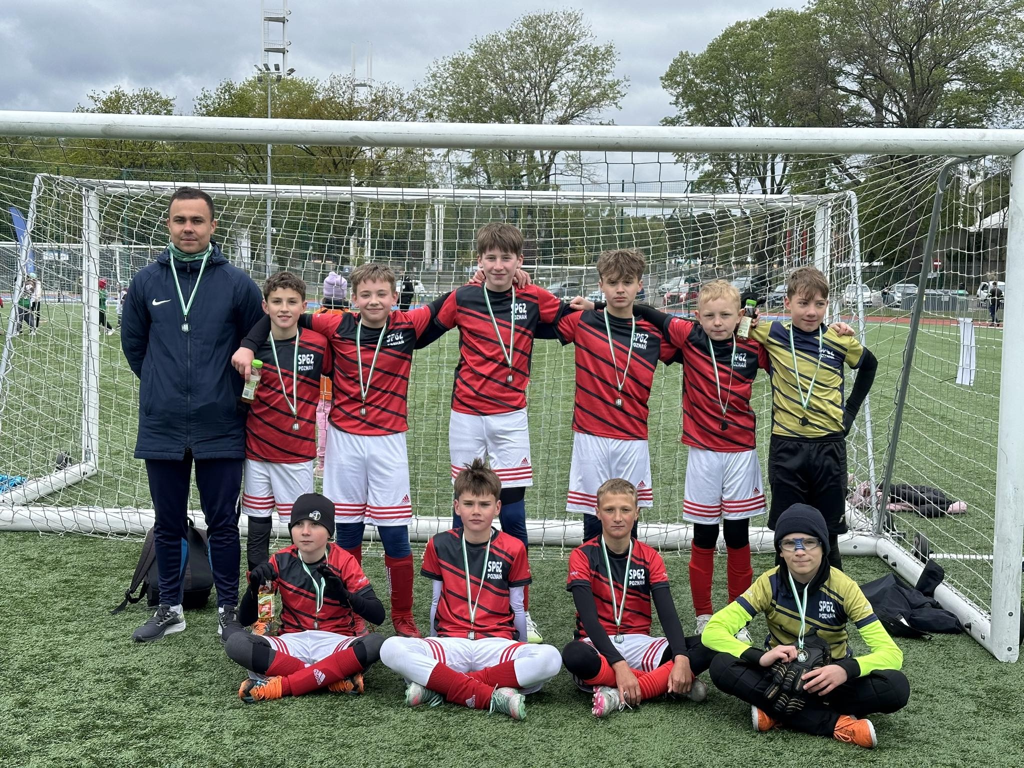 W poniedziałek 22.04 reprezentanci naszej szkoły wzięli udział w finale powiatowym Turnieju o Puchar Tymbarku w kategorii chłopców U12. Zawody odbyły się na boisku POSiR przy ul. Warmińskiej w Poznaniu. Oprócz naszej szkoły w rozgrywkach wzięło udział 9 innych poznańskich szkół, które wcześniej przeszły eliminacje gminne. Nasi uczniowie spisali się wyśmienicie wygrywając wszystkie mecze w fazie grupowe, w półfinale okazali się lepsi od SP51 odnosząc zwycięstwo w stosunku 8:0. W wielkim finale mimo początkowych trudności, pokonali SP67 6:3 wygrywając w całych rozgrywkach.