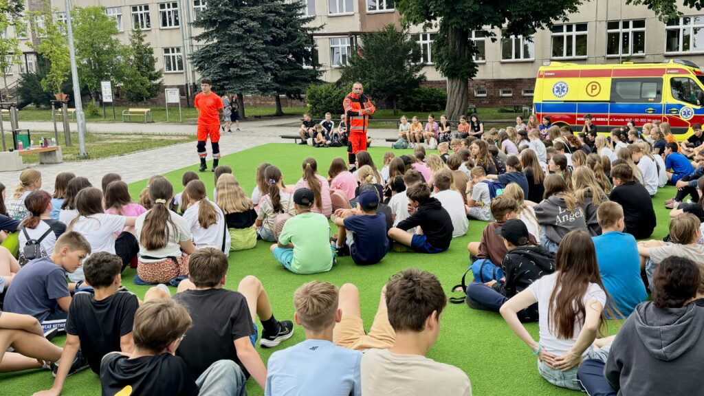 Nasi uczniowie uczestniczyli dziś w bardzo ważnej lekcji. Ratownicy medyczni przekazali wiadomości, które warto zapamiętać, aby zadbać o zdrowie, a nawet życie swoje lub drugiego człowieka. Uczniowie wzięli udział w części teoretycznej i praktycznej.