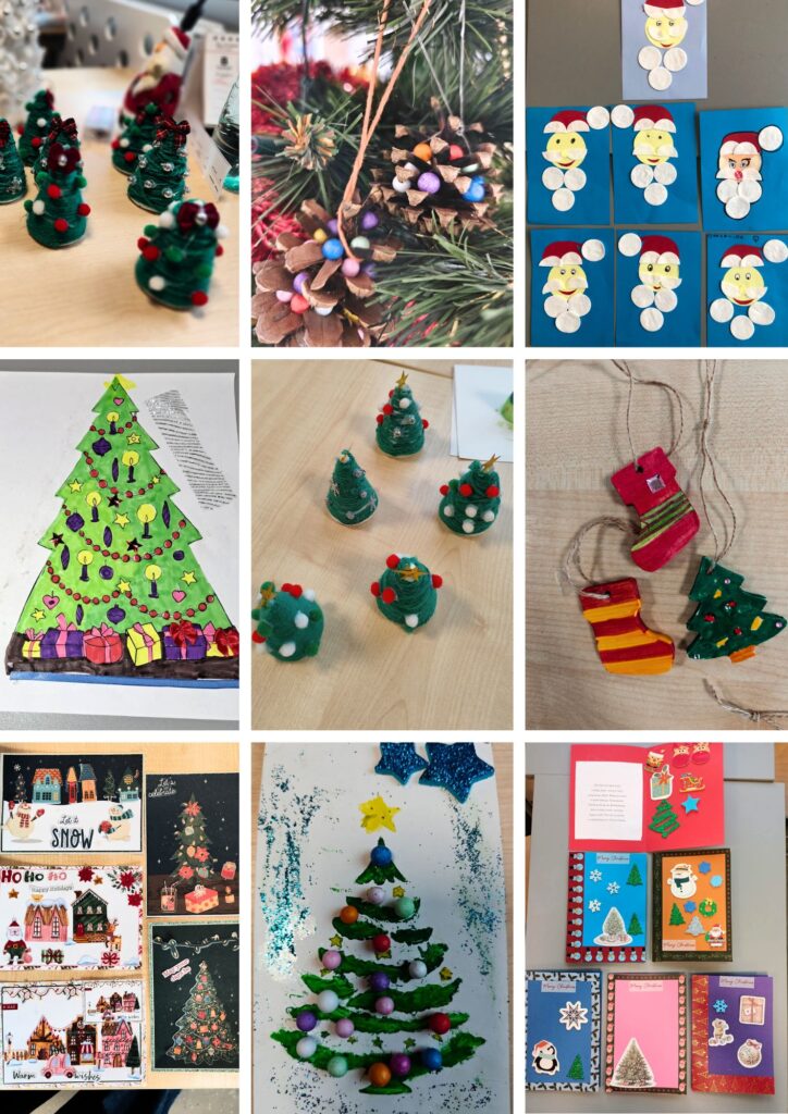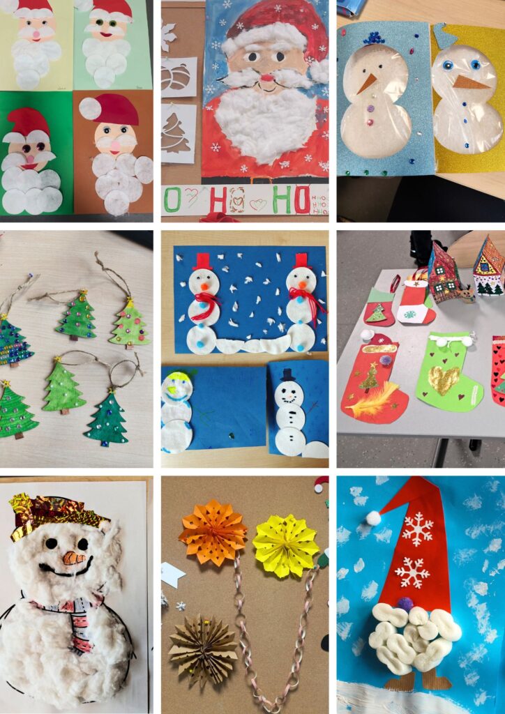 Tydzień pod hasłem „W świątecznym nastroju” obfitował w działania artystyczne. Dzieci wykonały piękne choinki, bombki, ozdoby choinkowe, kartki świąteczne oraz stroiki, które wprowadziły wszystkich w prawdziwie magiczny, świąteczny klimat.
