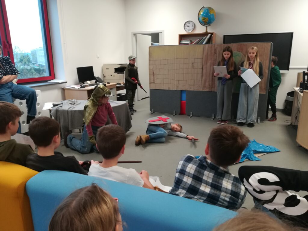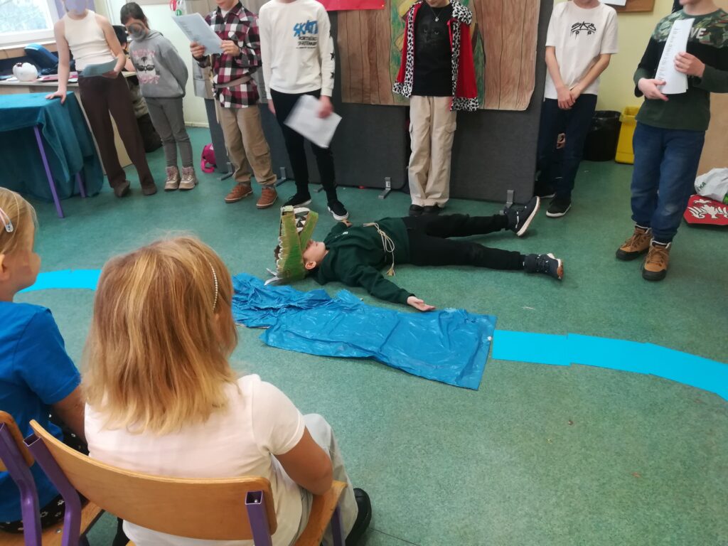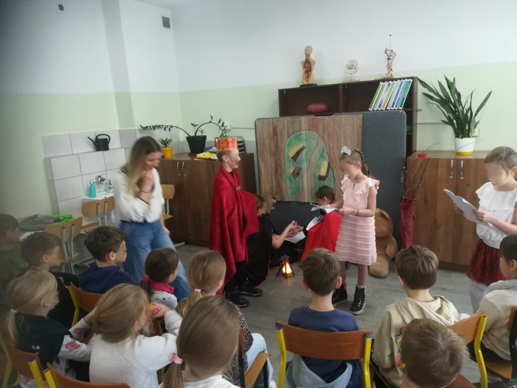 i wyobraźnię. Czwartoklasiści natomiast doskonalili umiejętności pracy zespołowej, interpretacji tekstu oraz wystąpień publicznych.