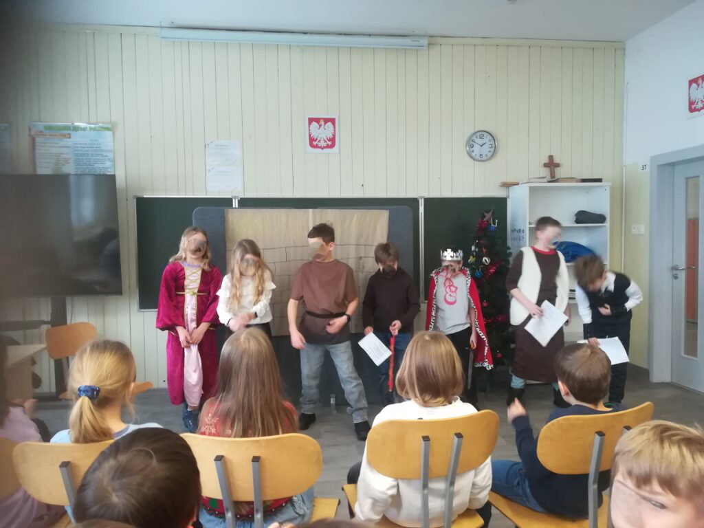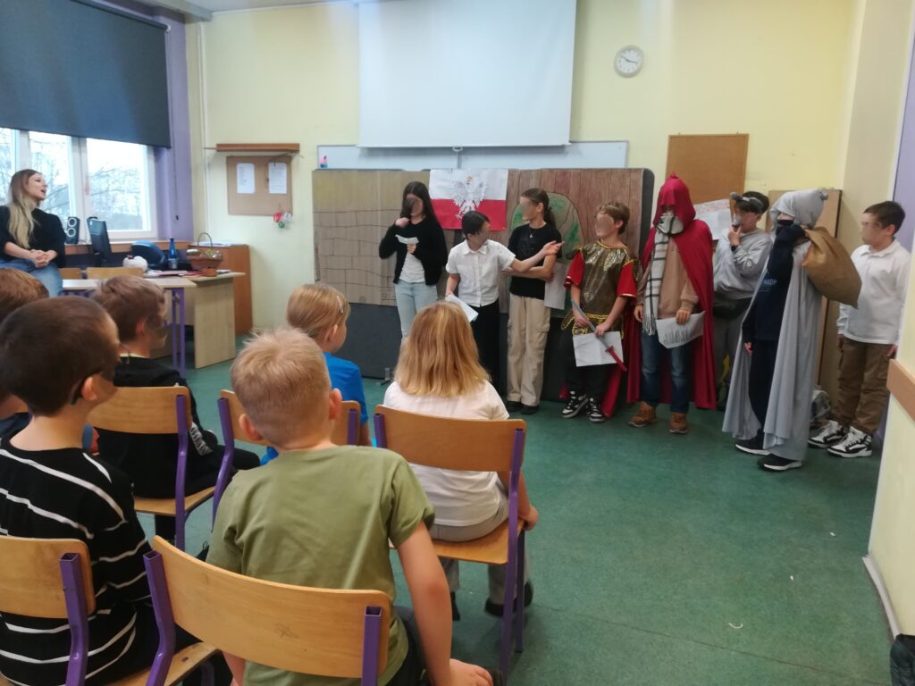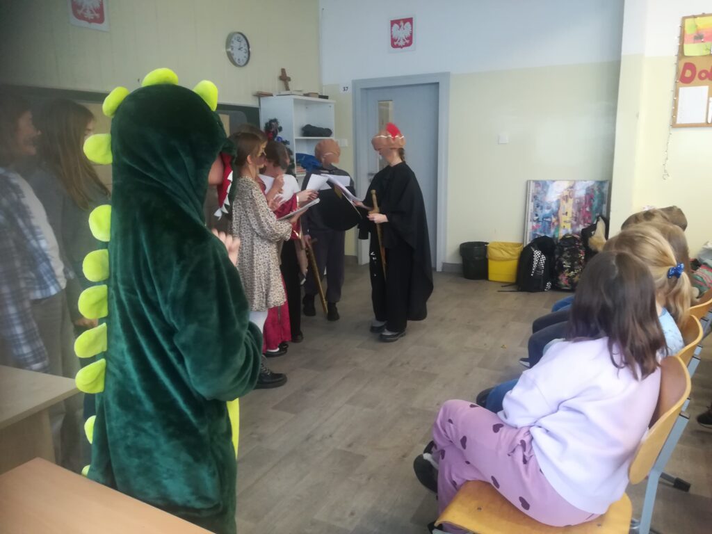 Pod opieką pomysłodawczyni projektu, pani Agnieszki Stępień-Sip, uczniowie klas czwartych przygotowali adaptacje teatralne znanych polskich legend: „Lech, Czech i Rus”, „Legenda o Piaście”, „Legenda o Popielu” oraz „Legenda o smoku wawelskim”. Scenariusze powstały na podstawie zbiorów biblioteki szkolnej, a same przedstawienia odbyły się w jej przestrzeni, co stworzyło wyjątkowy klimat spotkania z historią i literaturą.