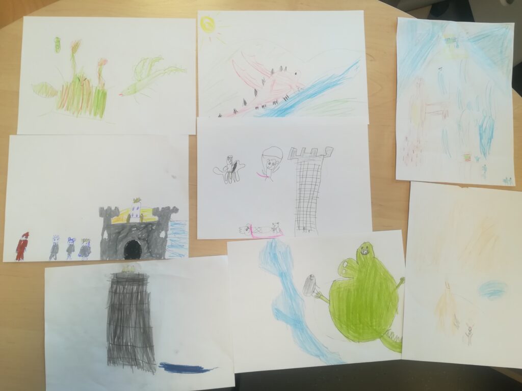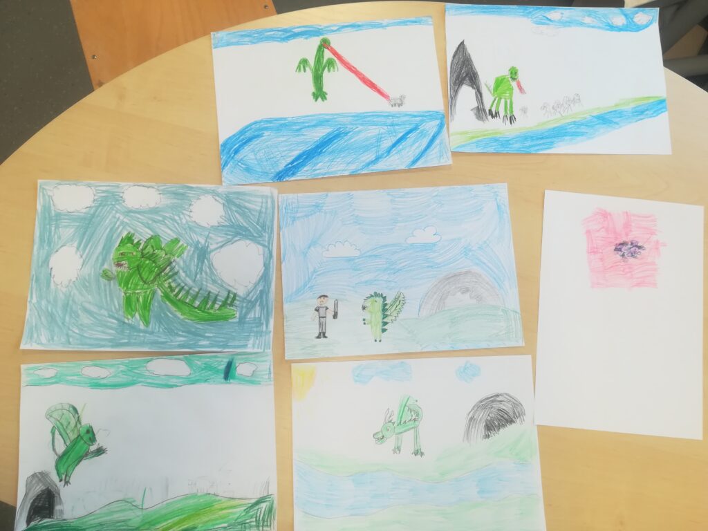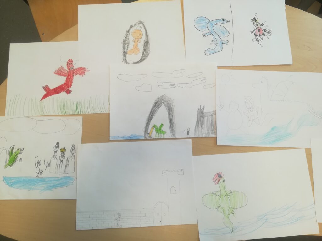 Po obejrzeniu spektakli pierwszoklasiści wykonali ilustracje do wybranych legend, rozwijając swoją kreatywność